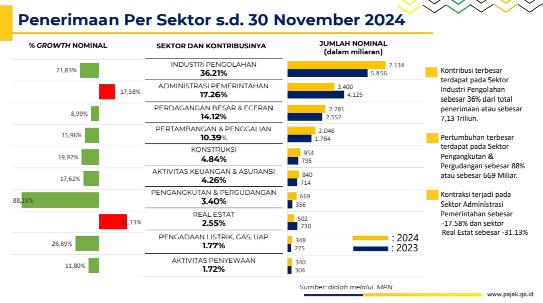 - Penurunan aktivitas konstruksi yang berdampak langsung pada penerimaan pajak sektor ini.