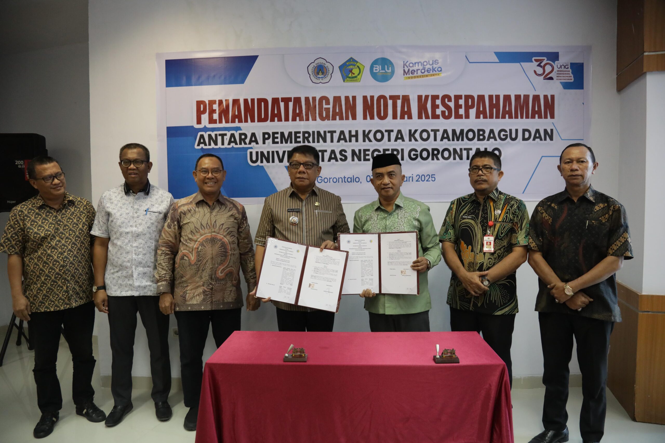 Acara penandatanganan ini turut dihadiri oleh para pejabat dari lingkungan **Universitas Negeri Gorontalo** dan **Pemerintah Daerah Kota Kotamobagu**. Kesepakatan ini diharapkan dapat memperkuat kolaborasi antara pemerintah daerah dan dunia akademik dalam mengembangkan sumber daya manusia serta mengaplikasikan hasil penelitian untuk kepentingan masyarakat.