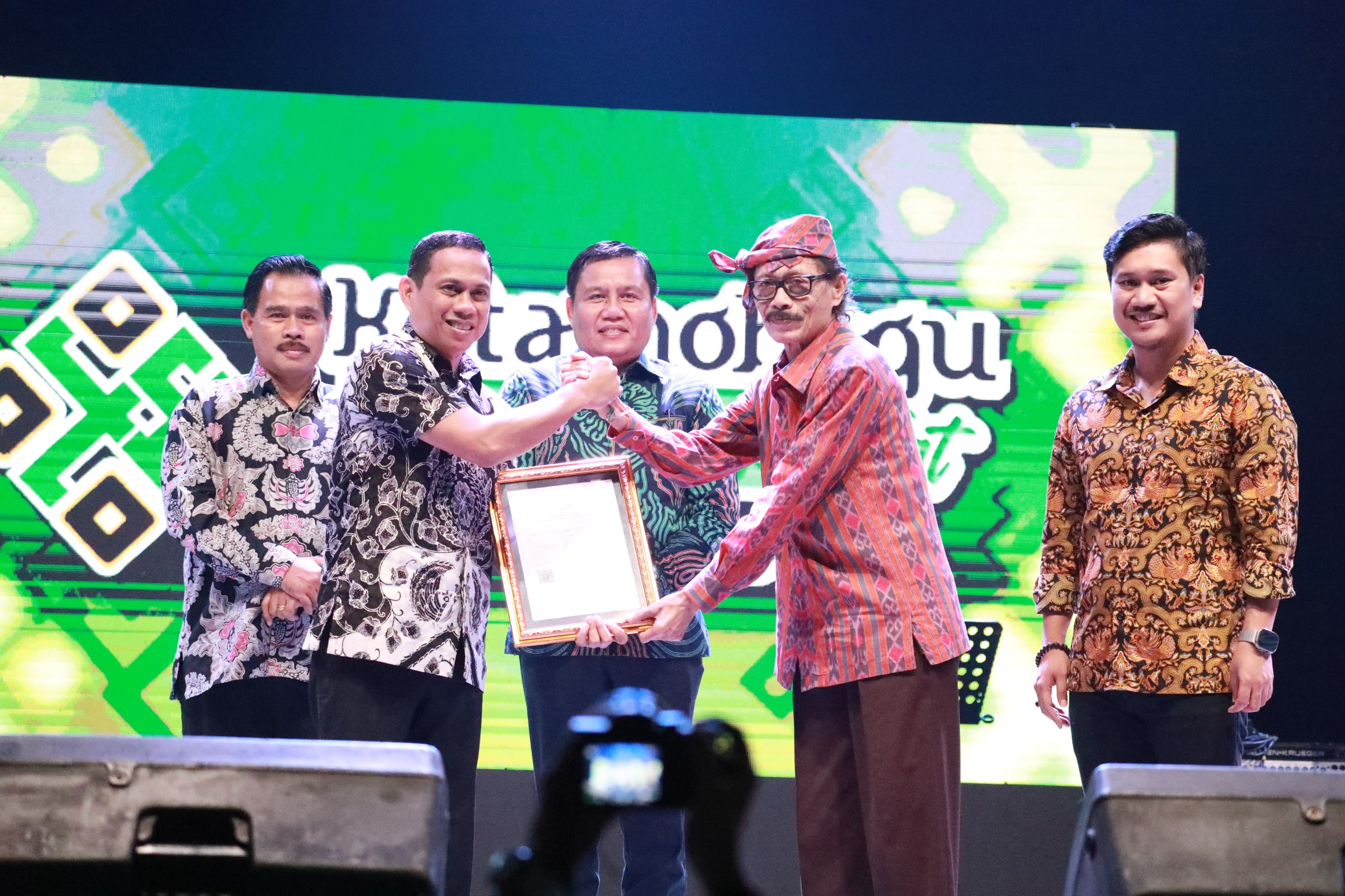 Pada kesempatan yang sama, dilakukan pula penyerahan Surat Pencatatan Kekayaan Intelektual Komunal dari Kementerian Hukum dan HAM Republik Indonesia untuk alat musik tradisional Rababo.