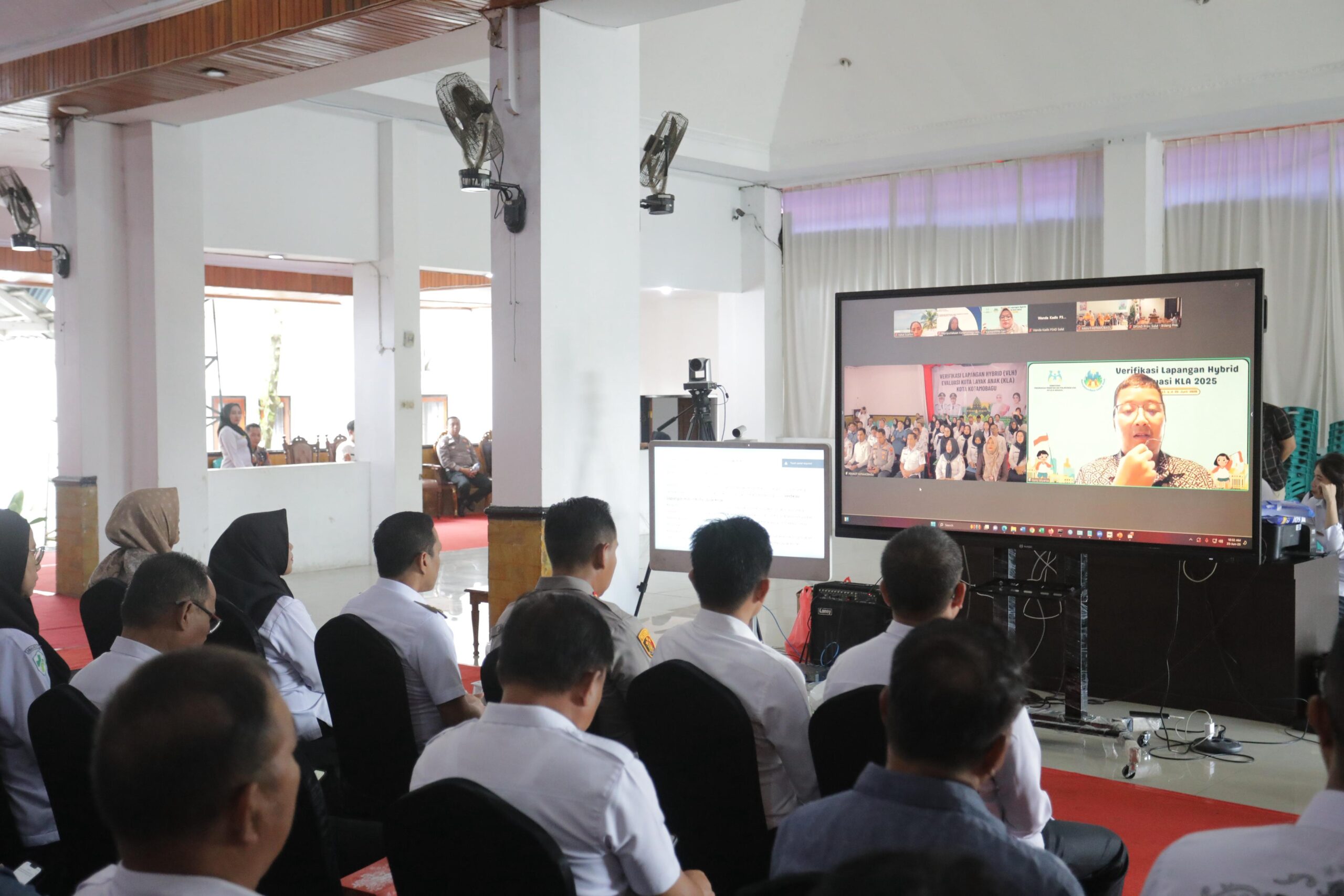 KLIK24.NEWS Kotamobagu — Wali Kota Kotamobagu, dr. Weny Gaib, Sp.M, menghadiri secara langsung kegiatan Verifikasi Lapangan Hybrid Kota Layak Anak (KLA) yang berlangsung di Aula Rumah Dinas Wali Kota Kotamobagu, Rabu (25/06). Kegiatan ini menjadi bagian penting dalam proses evaluasi nasional atas komitmen dan implementasi Kota Kotamobagu sebagai kota yang ramah, aman, dan mendukung tumbuh kembang anak.