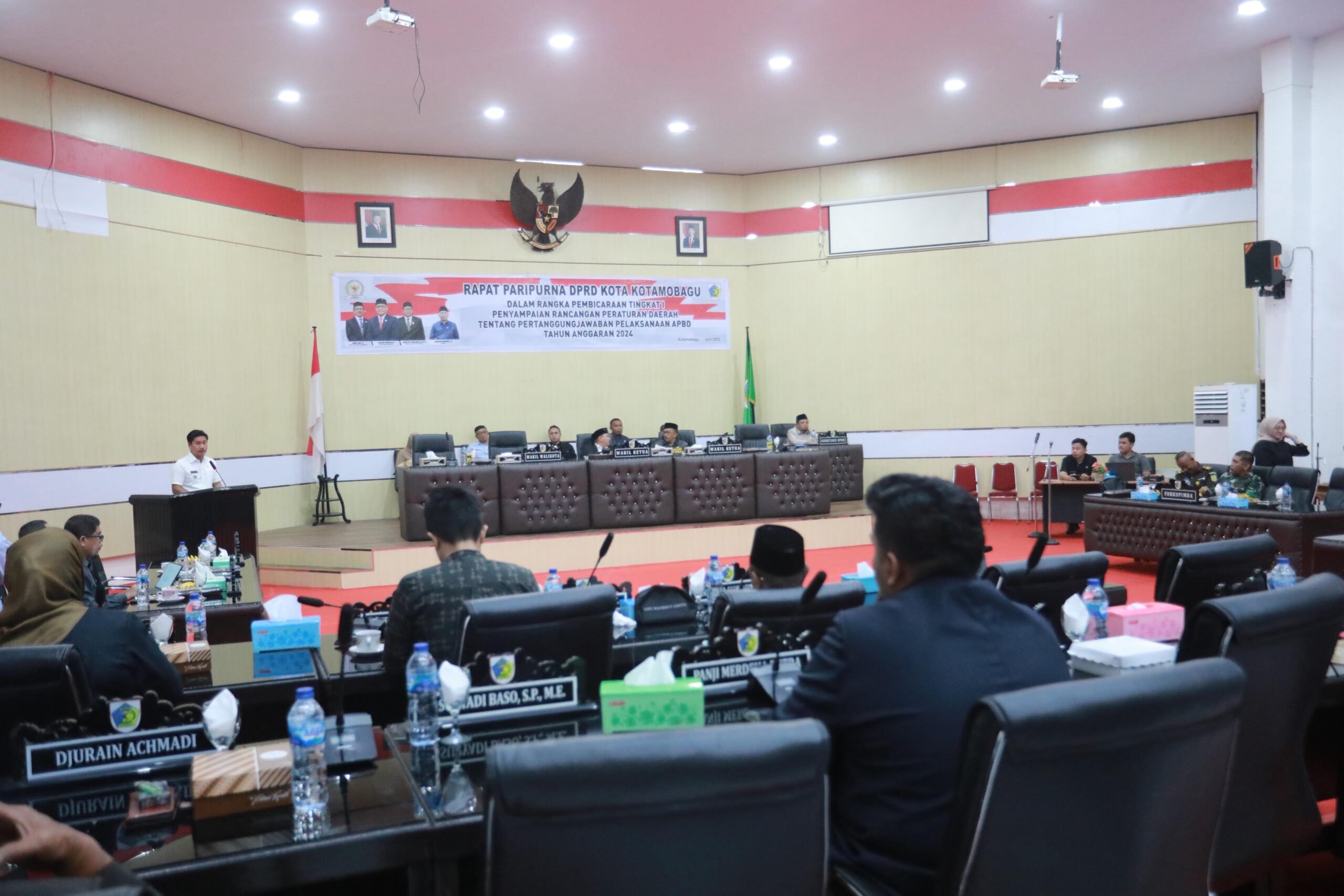 Rapat paripurna yang dipimpin oleh Wakil Ketua DPRD Kotamobagu, Jusran Deby Mokolanot, S.Ag., M.Si, turut dihadiri oleh Wakil Ketua DPRD Ahmad Sabir, S.E., para anggota DPRD, Perwakilan Forkopimda Kota Kotamobagu, Plh. Sekda Adnan, S.Sos., M.Si, Asisten III Moch. Agung Adati, S.T., M.Si, serta para pimpinan OPD di lingkungan Pemerintah Kota Kotamobagu.