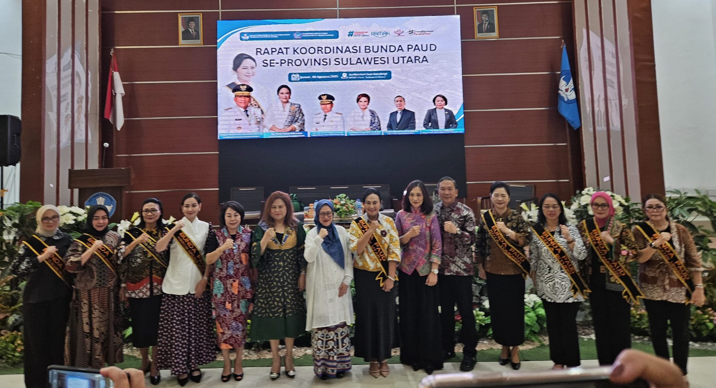 Rakor tersebut dibuka langsung oleh Bunda PAUD Provinsi Sulawesi Utara, Ny. Anik Yulius Selvanus, dan dihadiri seluruh Bunda PAUD kabupaten/kota se-Sulawesi Utara.