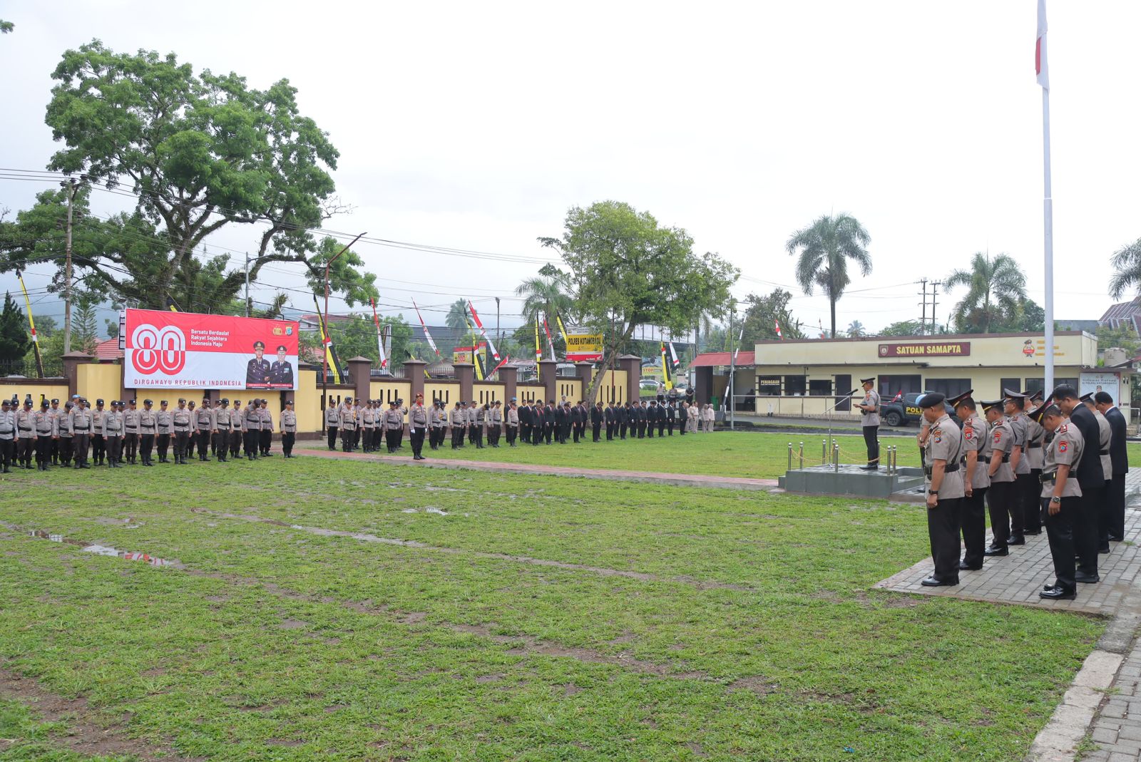 Upacara tersebut diikuti Wakapolres, pejabat utama, para perwira, bintara, hingga ASN Polres Kotamobagu. Dalam rangkaian kegiatan, turut dibacakan sejarah singkat Hari Juang Polri serta Teks Proklamasi Polisi oleh Inspektur Upacara.