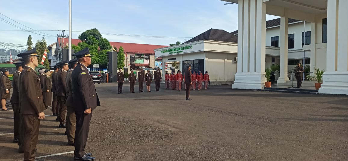 Upacara berlangsung khidmat dengan Kepala Kejaksaan Negeri (Kajari) Kotamobagu, Saptono, S.H., bertindak sebagai inspektur upacara sekaligus membacakan amanat Jaksa Agung Republik Indonesia, Burhanuddin.