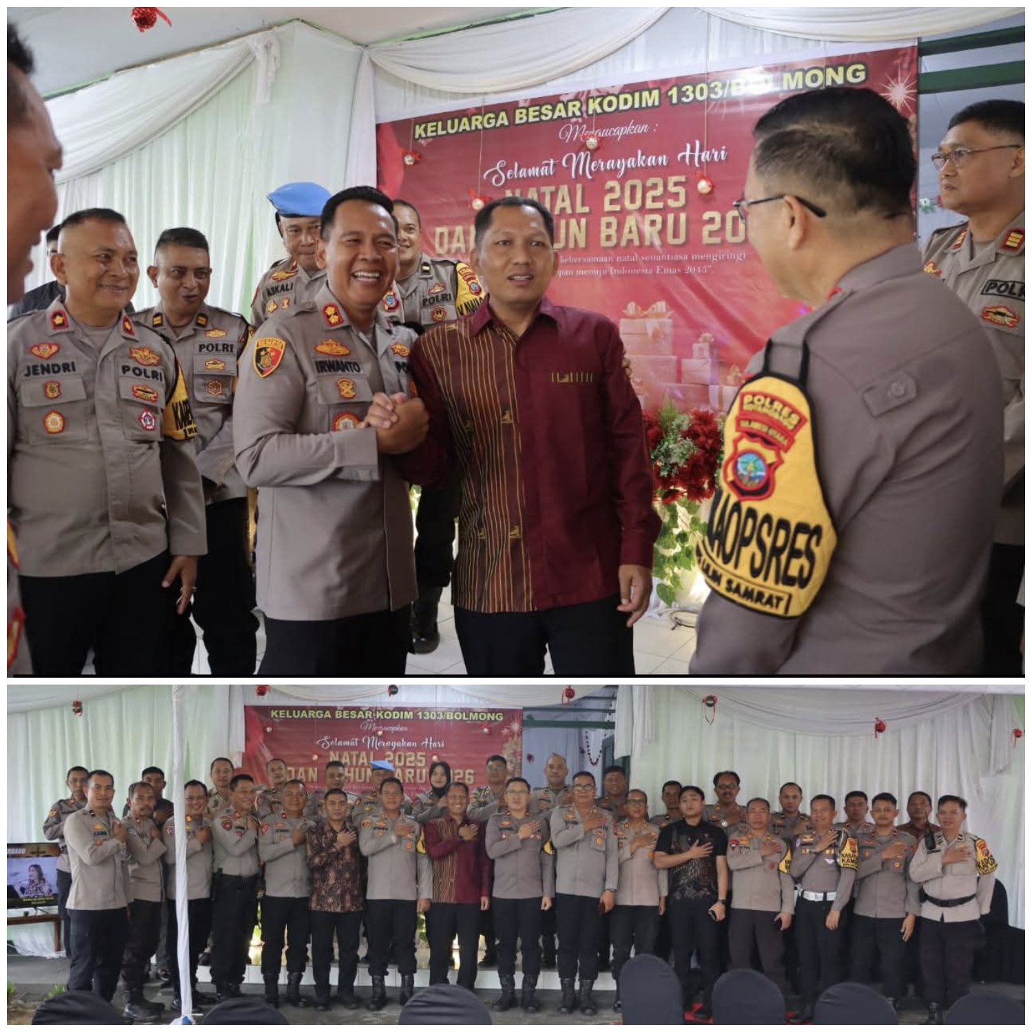Kapolres Kotamobagu AKBP Irwanto menyampaikan bahwa momentum perayaan Natal merupakan sarana yang tepat untuk mempererat tali silaturahmi sekaligus memperkuat komunikasi dan kerja sama antara Polres Kotamobagu dan Kodim 1303/Bolmong.
