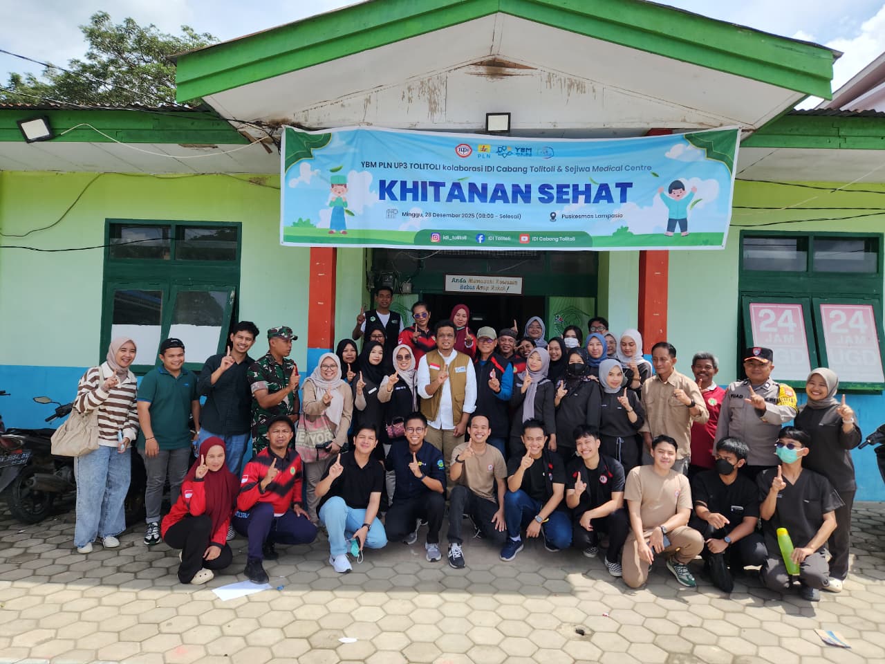 KLIK24.NEWS Tolitoli — Komitmen PT PLN (Persero) dalam menghadirkan manfaat nyata bagi masyarakat kembali diwujudkan melalui kegiatan sosial. PLN UP3 Tolitoli melalui Yayasan Baitul Maal (YBM) bersinergi dengan Ikatan Dokter Indonesia (IDI) Cabang Tolitoli menggelar khitan massal gratis bagi 62 anak dari keluarga prasejahtera di Puskesmas Lampasio, Kabupaten Tolitoli.