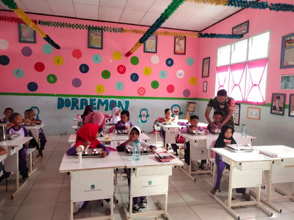 KLIK24.NEWS Bolsel – Kepedulian TNI terhadap peningkatan kualitas generasi muda terus diwujudkan melalui pendampingan Program Makan Bergizi Gratis (MBG). Babinsa Koramil 1303-17/Posigadan melaksanakan pendampingan dan pengawasan langsung kegiatan MBG di wilayah Kecamatan Posigadan, Kabupaten Bolaang Mongondow Selatan, Jumat (09/01/2026).