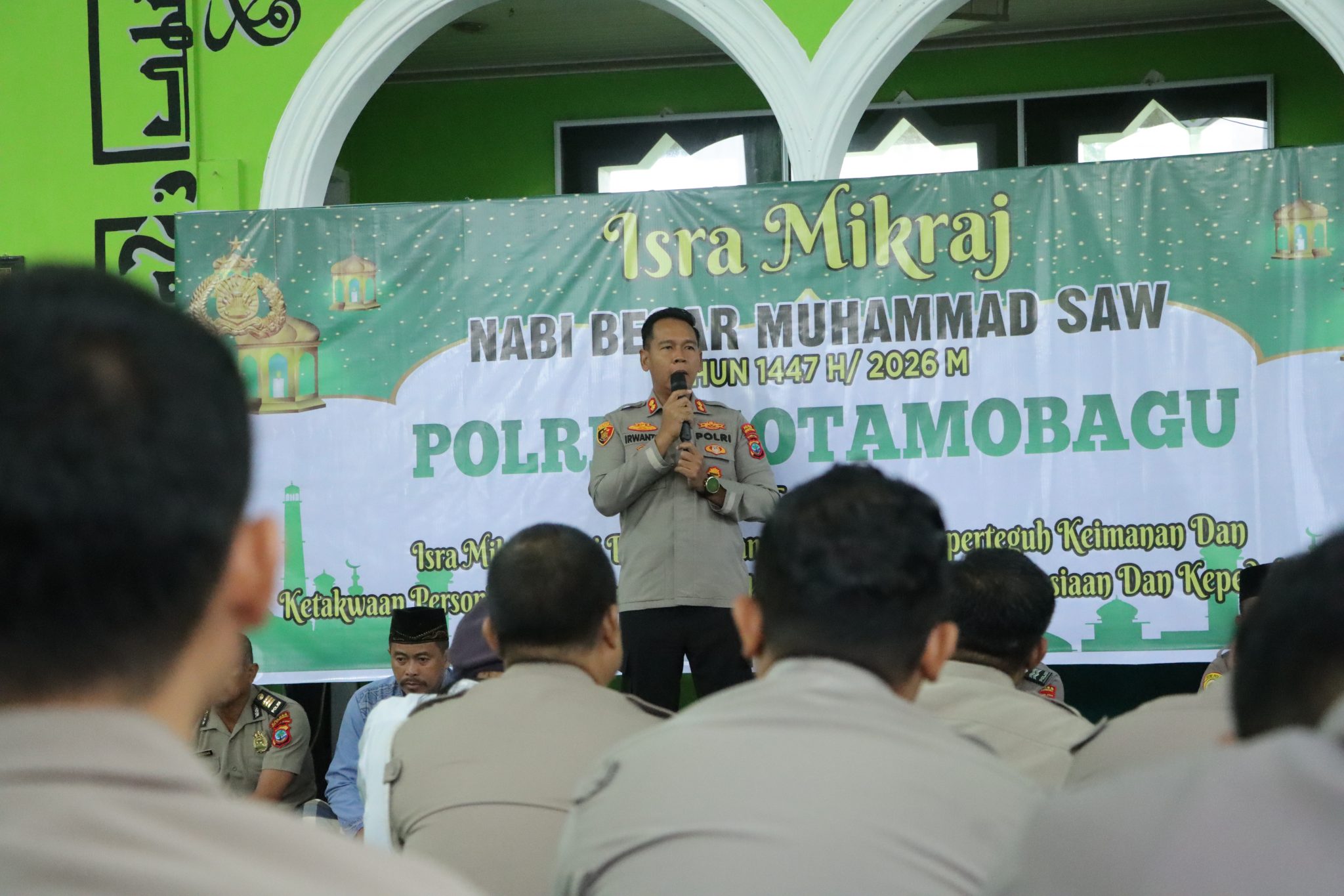 Kapolres Kotamobagu AKBP Irwanto, S.I.K., M.H dalam keterangannya menegaskan bahwa peringatan Isra Mi’raj bukan sekadar agenda seremonial, melainkan bagian dari upaya membangun kekuatan mental dan spiritual personel Polres Kotamobagu.