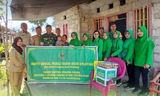 Dalam kesempatan itu, Danramil 1303-04/Lolayan Letda Inf Muslimin menegaskan bahwa kegiatan bakti sosial ini merupakan bagian dari peran aktif TNI dalam mendukung program pemerintah, khususnya percepatan penurunan angka stunting di wilayah binaan.