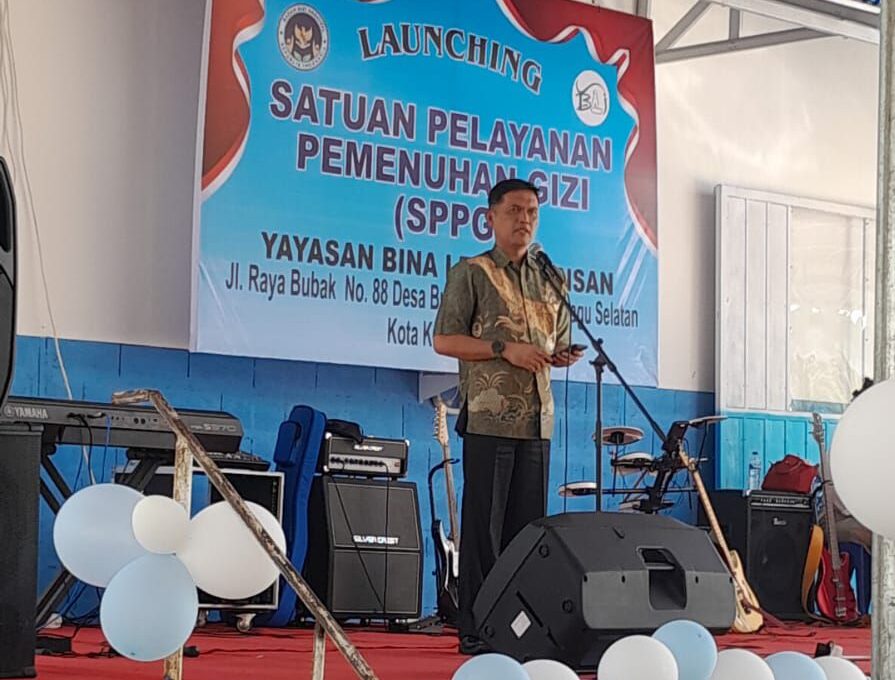 KLIK24.NEWS Kotamobagu – Pemerintah Kota Kotamobagu secara resmi melaksanakan launching dan peresmian Satuan Pelayanan Pemenuhan Gizi (SPPG) Desa Bungko, Kecamatan Kotamobagu Selatan. Kegiatan tersebut diresmikan oleh Wali Kota Kotamobagu yang diwakili Asisten Bidang Pemerintahan Sekretariat Daerah Kota Kotamobagu, Sahaya S. Mokoginta, S.STP., ME, sebagai wujud komitmen pemerintah daerah dalam meningkatkan kualitas kesehatan masyarakat.