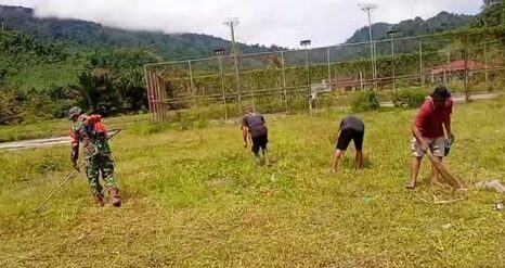 Dengan penuh semangat, Serda Husni turun langsung ke lapangan bersama warga binaannya. Tanpa sekat, ia ikut mengoperasikan mesin pemotong rumput, membersihkan area lapangan, serta merapikan fasilitas umum agar kembali layak digunakan, khususnya oleh generasi muda desa.