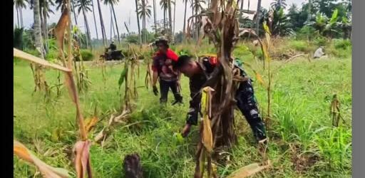 Pratu Satria turun langsung ke lahan pertanian milik Bapak Suno Botutihe, seorang petani setempat. Dengan penuh semangat kebersamaan, Babinsa ikut memanen jagung serta membersihkan sisa batang tanaman sebagai bagian dari persiapan pengolahan lahan selanjutnya. Kehadiran Babinsa di ladang menjadi cerminan nyata kemanunggalan TNI dengan rakyat.