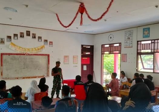 KLIK 24.NEWS BOLMUT — Di tengah semilir angin pedesaan dan semangat belajar generasi muda, kehadiran aparat teritorial TNI kembali memberi warna tersendiri bagi dunia pendidikan di Kabupaten Bolaang Mongondow Utara. Bukan dengan senjata, melainkan melalui keteladanan, pembinaan, dan pendampingan yang penuh kepedulian, Babinsa hadir menanamkan nilai-nilai kebangsaan sebagai bekal masa depan generasi penerus bangsa.