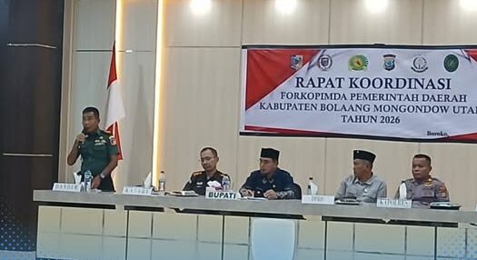 KLIK24.NEWS Boltara – Menyambut Bulan Suci Ramadan 1447 Hijriah, komitmen TNI dalam menjaga stabilitas wilayah kembali ditegaskan. Hal itu disampaikan Danramil Koramil 1303-15/Bintauna Kapten Kav. Lamapa Lauma saat menghadiri Rapat Koordinasi (Rakor) Forkopimda Tahun 2026 di ruang rapat Kantor Bupati Bolaang Mongondow Utara, Desa Boroko, Kecamatan Kaidipang, Kamis (12/02/2026).
