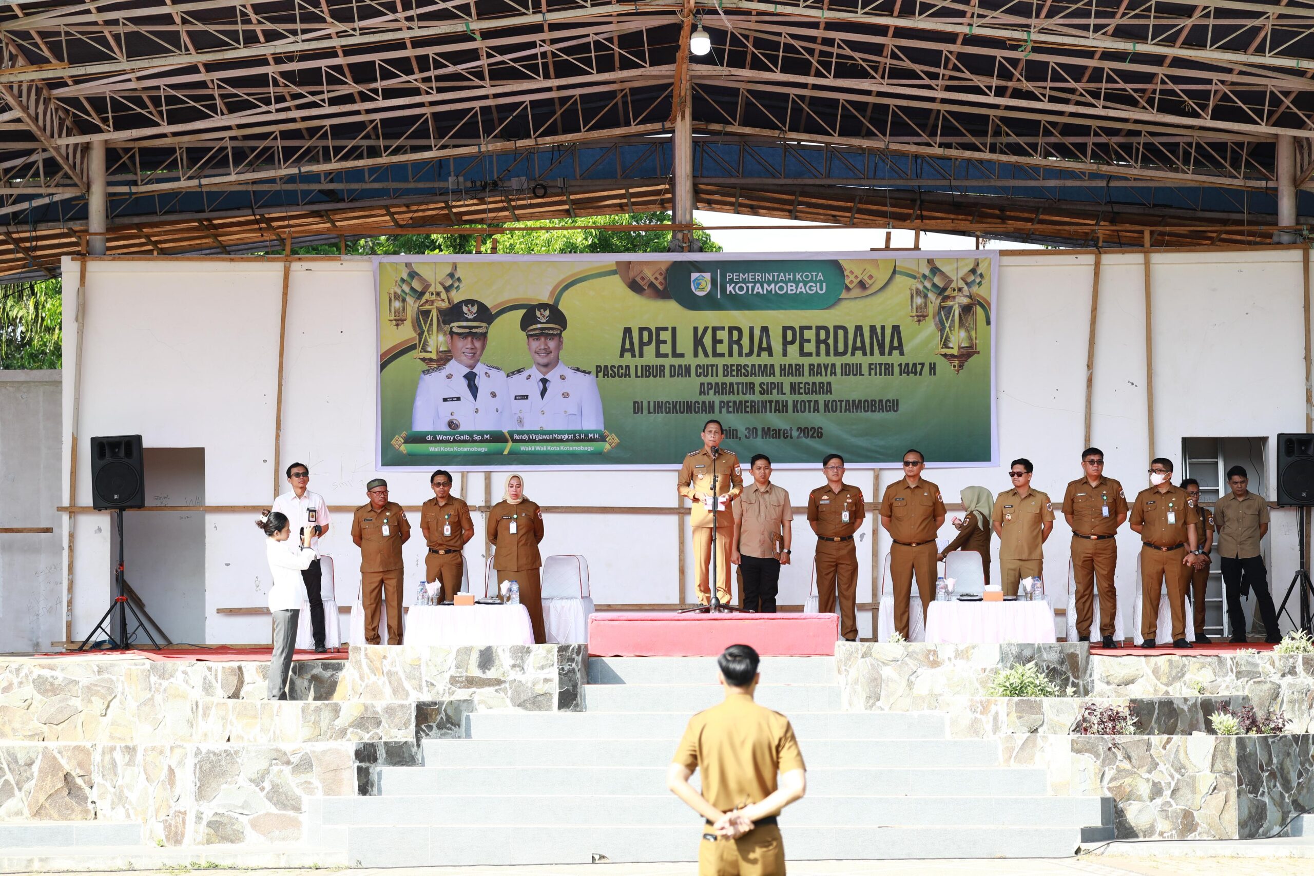 KLIK24.NEWS Kotamobagu – Wali Kota Kotamobagu, Weny Gaib, memimpin apel kerja perdana Aparatur Sipil Negara (ASN) di lingkungan Pemerintah Kota Kotamobagu pasca libur dan cuti bersama Hari Suci Nyepi serta Hari Raya Idul Fitri 1447 Hijriah.