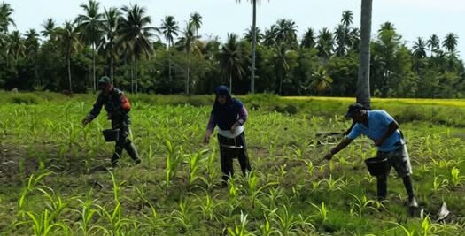 Kegiatan tersebut dilakukan oleh Babinsa Koramil 1303-14/Bolangitang, Sertu Moh. Taufik, yang melaksanakan kegiatan Pembinaan Ketahanan Wilayah (Bintahwil) dengan membantu masyarakat memupuk tanaman jagung milik Usno Ponamon.