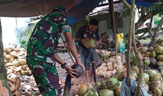 Kegiatan humanis tersebut dilakukan oleh Bintara Pembina Desa (Babinsa) Koramil 1303-11/Lolak, Serma I Gede Subaga, saat melaksanakan Pembinaan Ketahanan Wilayah (Bintahwil) dengan membantu warga mengupas buah kelapa milik Bapak Desmon Manginsihi di Desa Baturapa Dua, Kecamatan Lolak, Kabupaten Bolaang Mongondow, Kamis (5/3/2026).