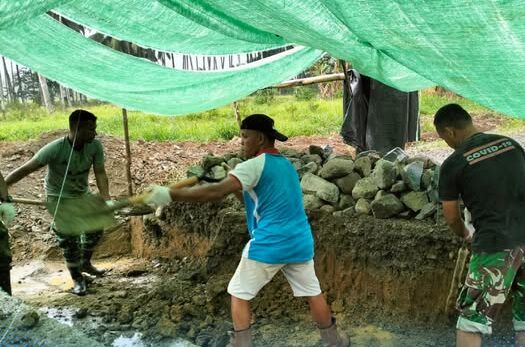 Di lapangan, personel TNI bersama masyarakat bahu-membahu memulai pekerjaan dengan pembersihan lahan, penyiapan area konstruksi, hingga distribusi material seperti batu dan pasir. Kolaborasi ini menjadi wujud nyata semangat gotong royong dalam pembangunan desa.