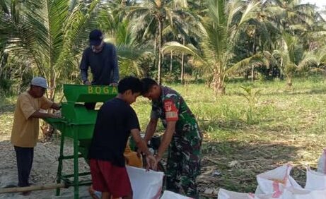 Dengan penuh semangat, Sertu Tomi tampak berbaur bersama para petani, membantu proses perontokan jagung yang menjadi tahapan penting pascapanen. Kehadiran aparat teritorial ini tidak hanya meringankan pekerjaan warga, tetapi juga memberikan dorongan moral bagi para petani dalam meningkatkan produktivitas hasil pertanian.