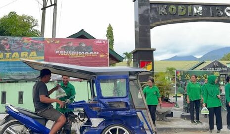 KLIK24.NEWS Kotamobagu – Suasana sore menjelang waktu berbuka puasa di depan Makodim 1303/Bolaang Mongondow terlihat berbeda. Di tengah ramainya lalu lintas kendaraan, sejumlah prajurit TNI bersama anggota Persit Kartika Chandra Kirana Cabang XV Dim 1303/Bolmong berdiri di tepi jalan sambil membagikan takjil kepada para pengguna jalan.