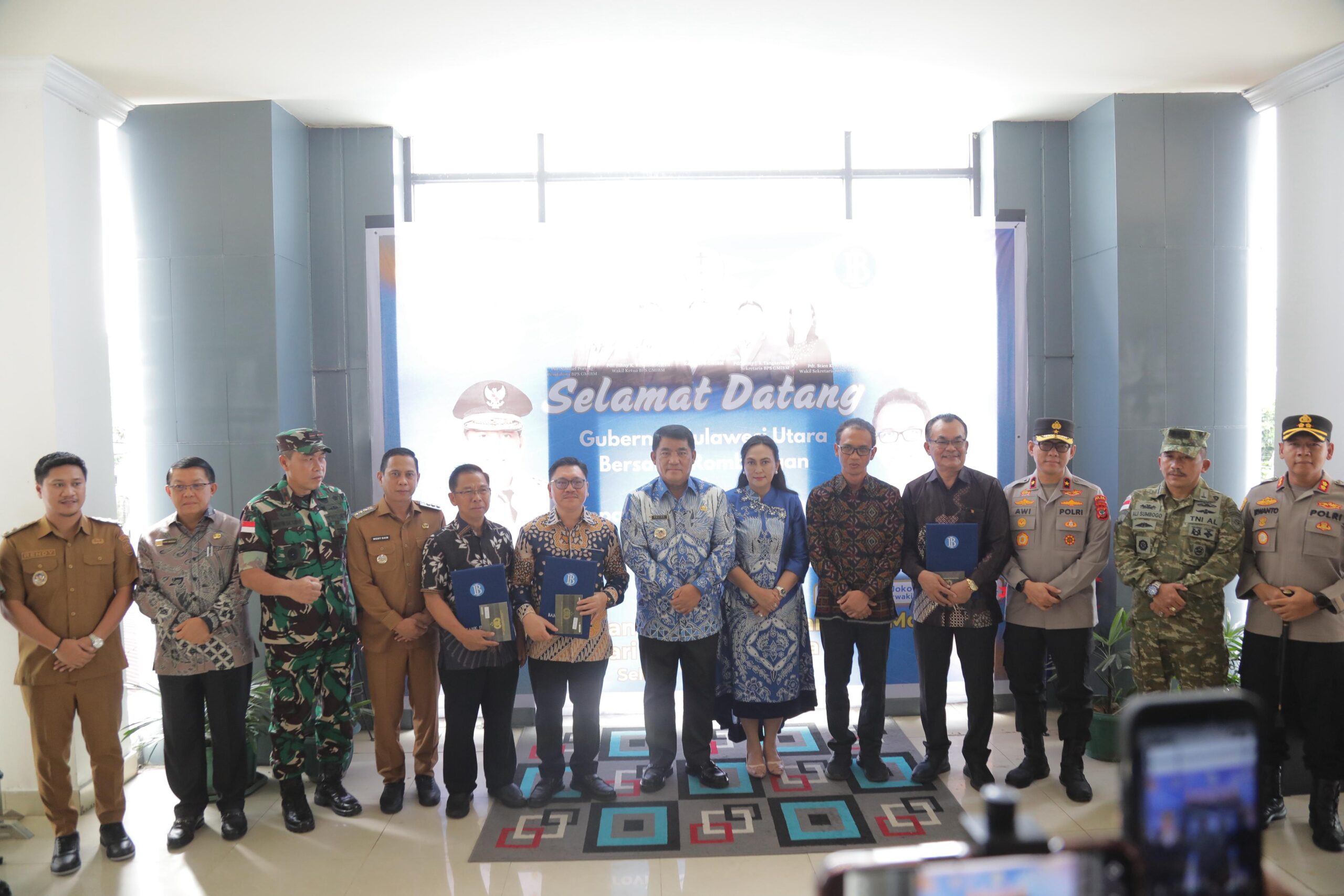 Penyerahan bantuan tersebut turut dihadiri Kepala Perwakilan Bank Indonesia Provinsi Sulawesi Utara Joko Supratikto serta Ketua GMIBM Fekky W. Kamasaan.