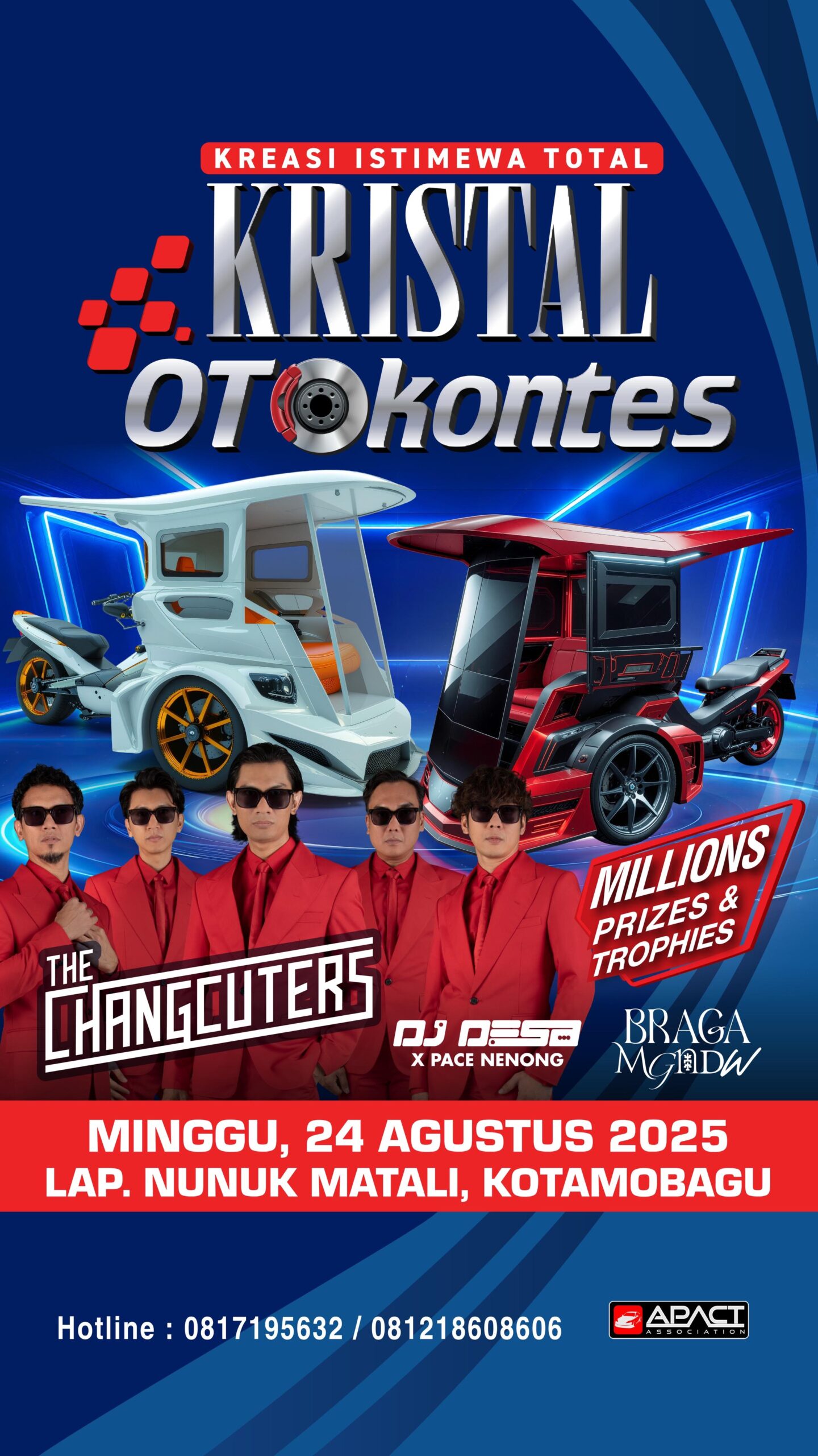 Bukan hanya dunia otomotif, Kristal OTOkontes 2025 juga akan menjelma jadi pesta hiburan rakyat. The Changcuters, band rock and roll enerjik, siap mengguncang panggung bersama DJ Desa x Pace Nenong dan Braga Mgndw yang akan membawa vibes musik kekinian untuk memanaskan suasana.