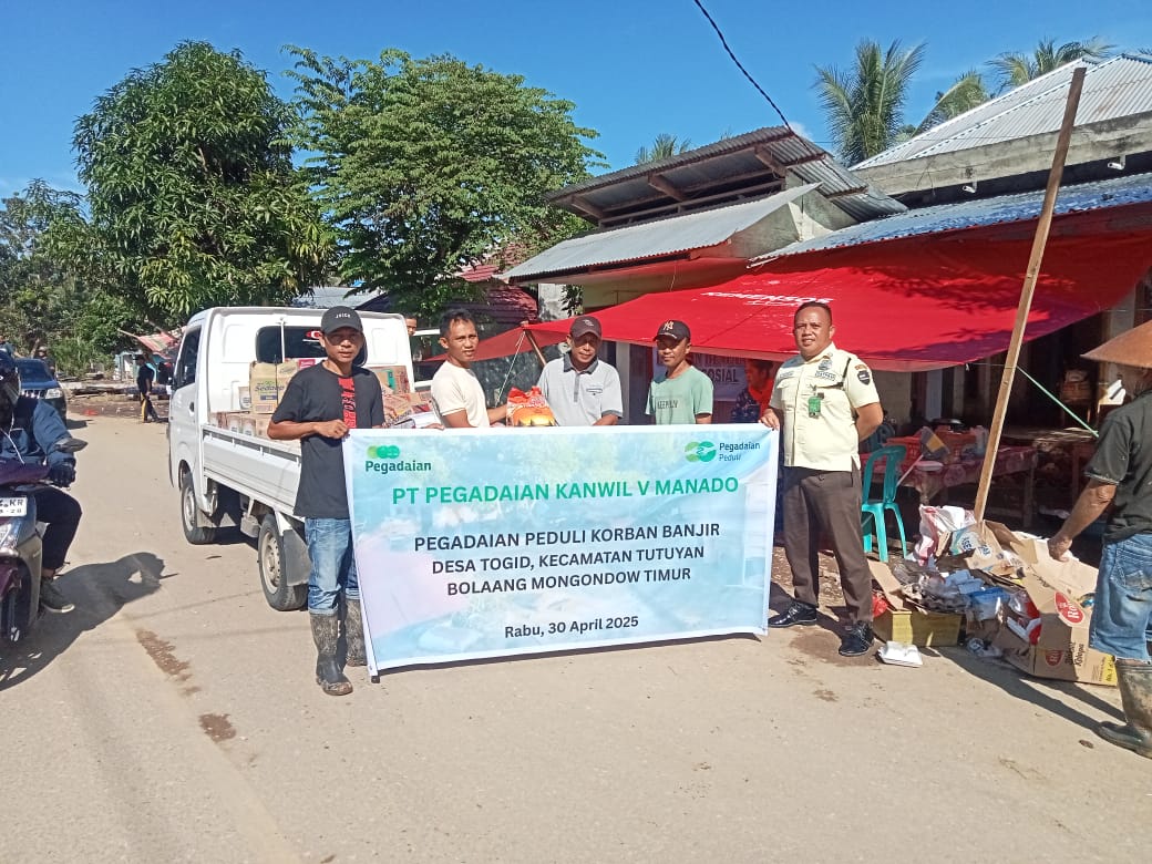 KLIK24.NEWS Boltim — Kepedulian sosial ditunjukkan PT Pegadaian Kanwil V Manado terhadap warga terdampak banjir di Desa Togid, Kecamatan Tutuyan, Kabupaten Bolaang Mongondow Timur (Boltim). Melalui Unit Pegadaian Tutuyan dan Kepala Bagian ESG, Yulie Fitriati Sutaruno, bantuan kemanusiaan disalurkan langsung ke posko bencana, Rabu (30/4/2025).