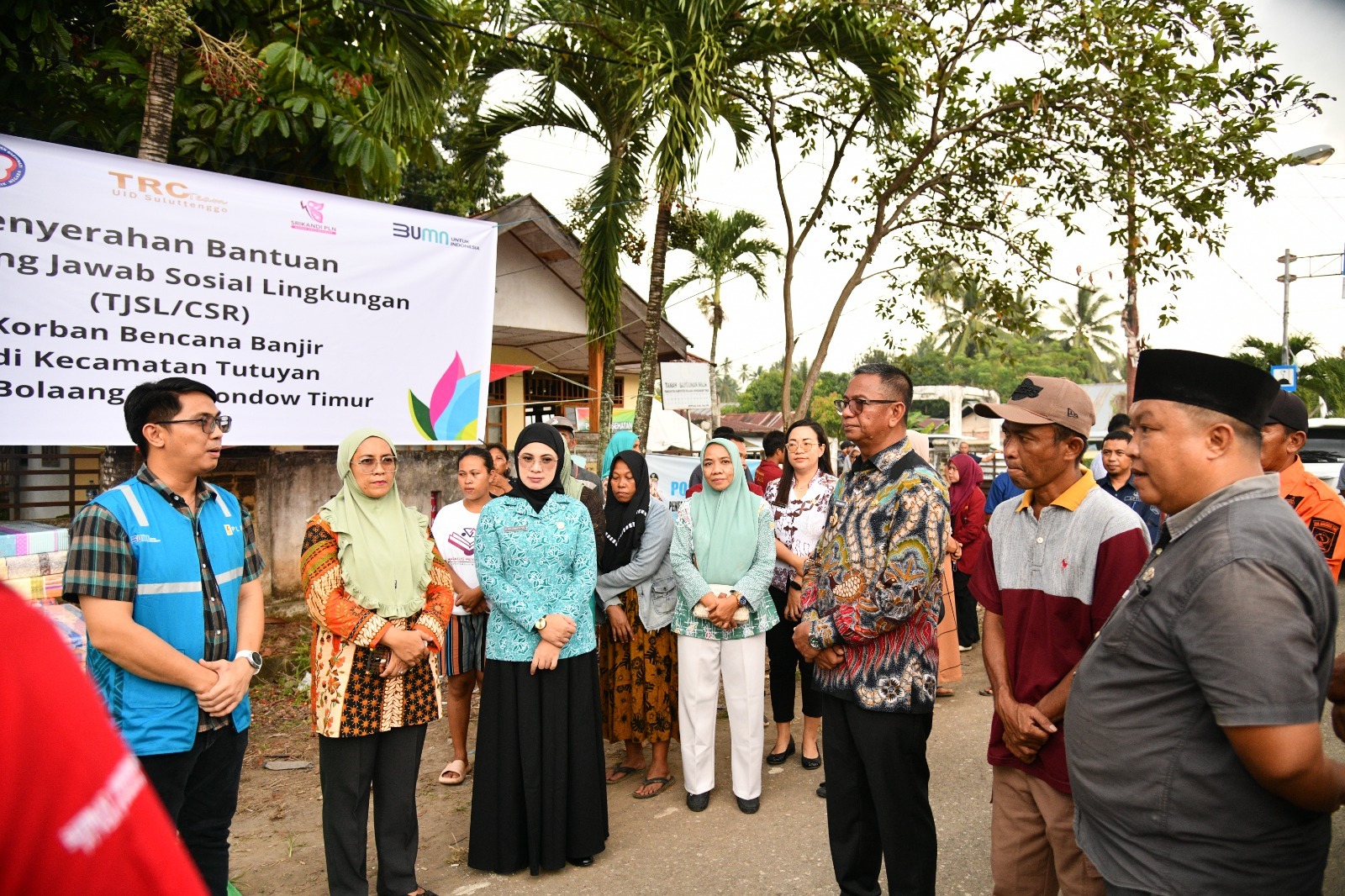 Bupati Kab. Bolaang Mongondow Timur didampingi Ketua TP-PKK Kab. Boltim mengapresiasi langkah cepat PLN Suluttenggo dalam penyaluran bantuan kepada masyarakat terdampak bencana di Desa Togid, Kecamatan Tutuyan, Kab. Boltim