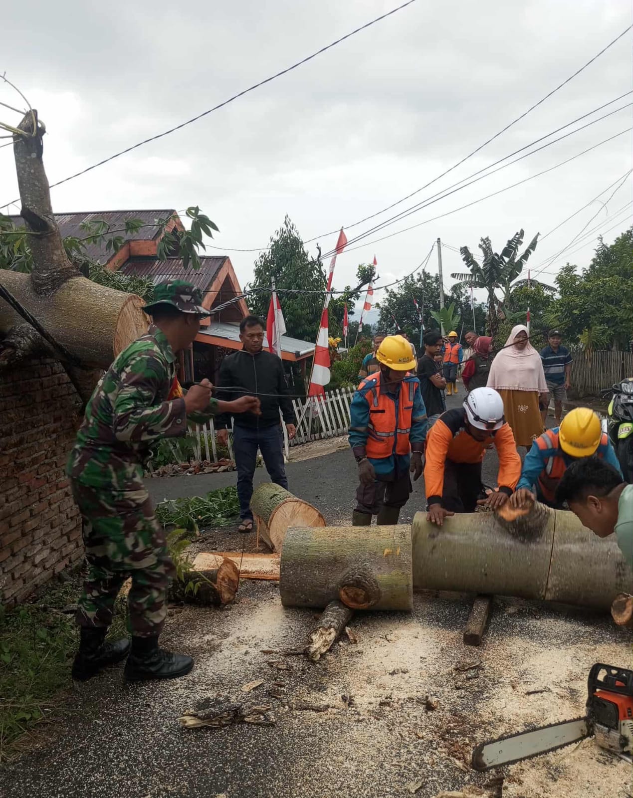 Babinsa, BPBD, dan PLN Gerak Cepat Bersihkan Pohon Tumbang di Bilalang Dua