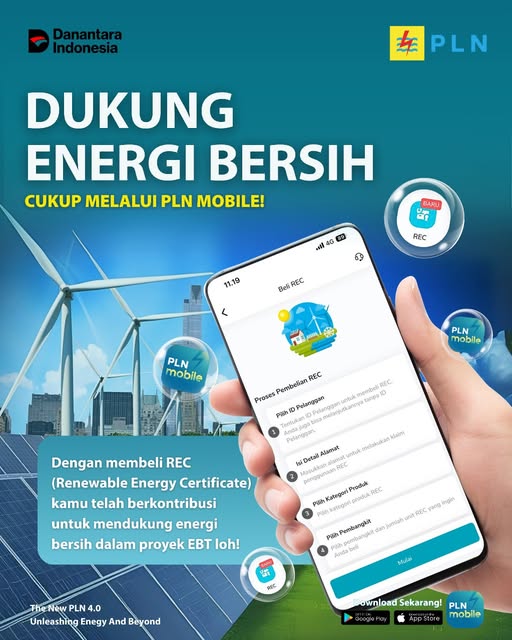 “REC adalah bukti nyata bahwa listrik yang digunakan berasal dari sumber Energi Baru Terbarukan. Kini, setiap orang bisa ambil bagian dalam mendukung energi hijau hanya lewat satu genggaman,” ujar EVP Komunikasi Korporat dan TJSL PLN, Gregorius Adi Trianto.