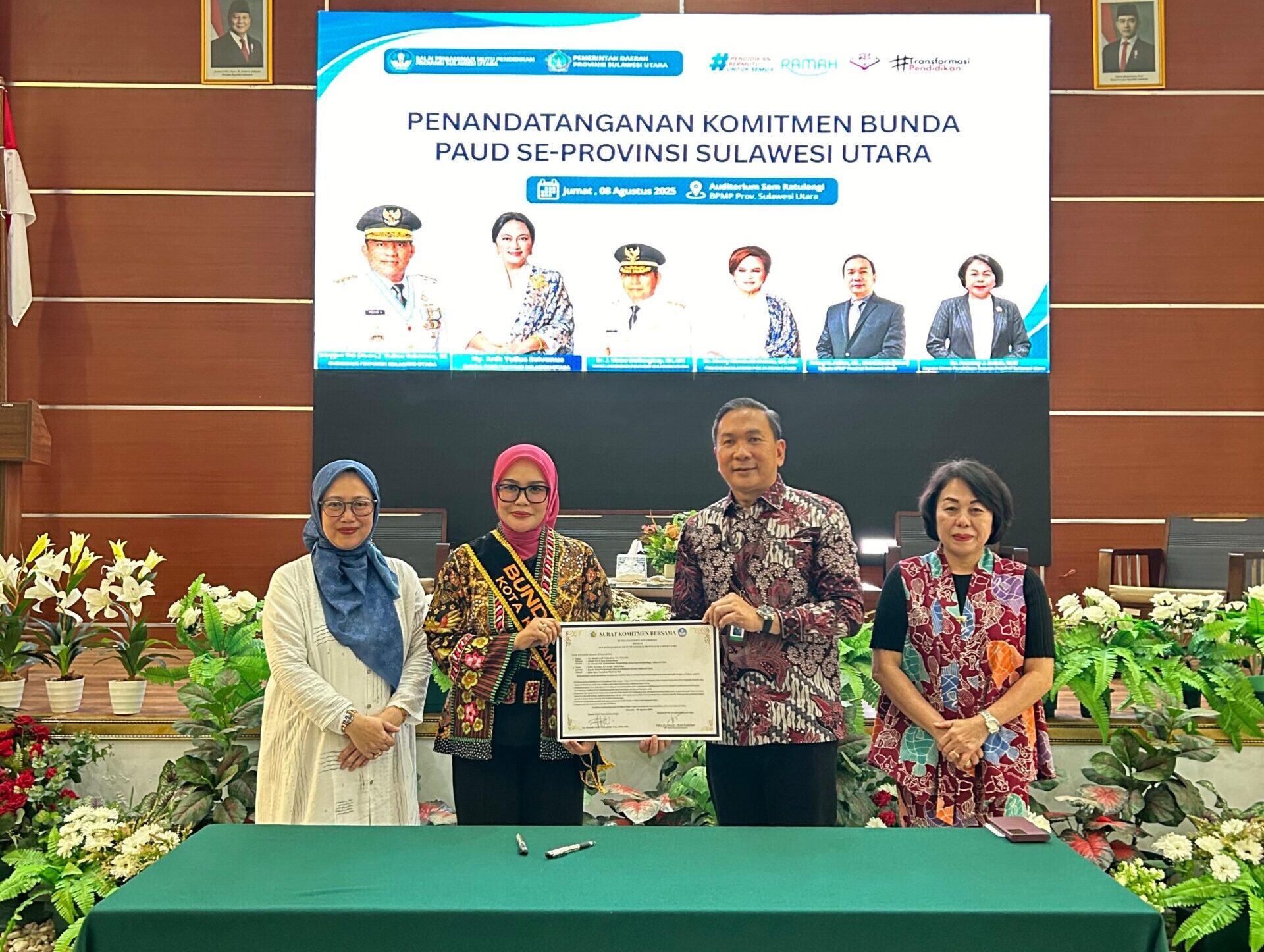Dalam kesempatan tersebut, Ny. Rindah Gaib Mokoginta juga melakukan penandatanganan komitmen bersama dengan Kepala BPMP Provinsi Sulut, Febry H.J. Dien, ST., M.Inf.Tech. Penandatanganan ini menjadi simbol sinergi antara Bunda PAUD dan lembaga pendidikan provinsi dalam upaya meningkatkan mutu layanan PAUD di Kota Kotamobagu.