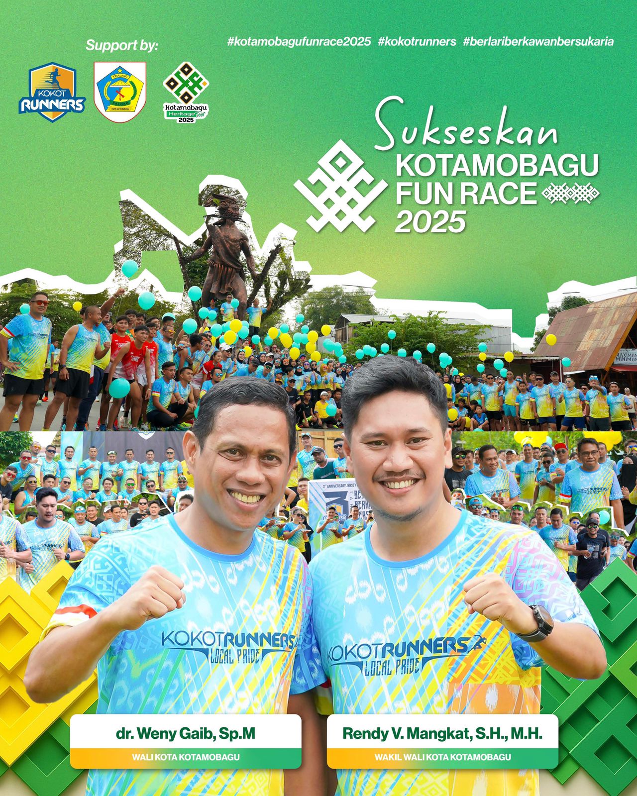 KLIK24.NEWS Kotamobagu — Gelaran akbar Kotamobagu Fun Race 2025 siap digelar pada Sabtu, 24 Mei 2025, di Alun-alun Boki Hontinimbang. Event olahraga yang dibalut dengan nuansa kebudayaan ini dipastikan akan diramaikan oleh lebih dari 1.500 peserta dari berbagai daerah di Sulawesi dan sekitarnya.