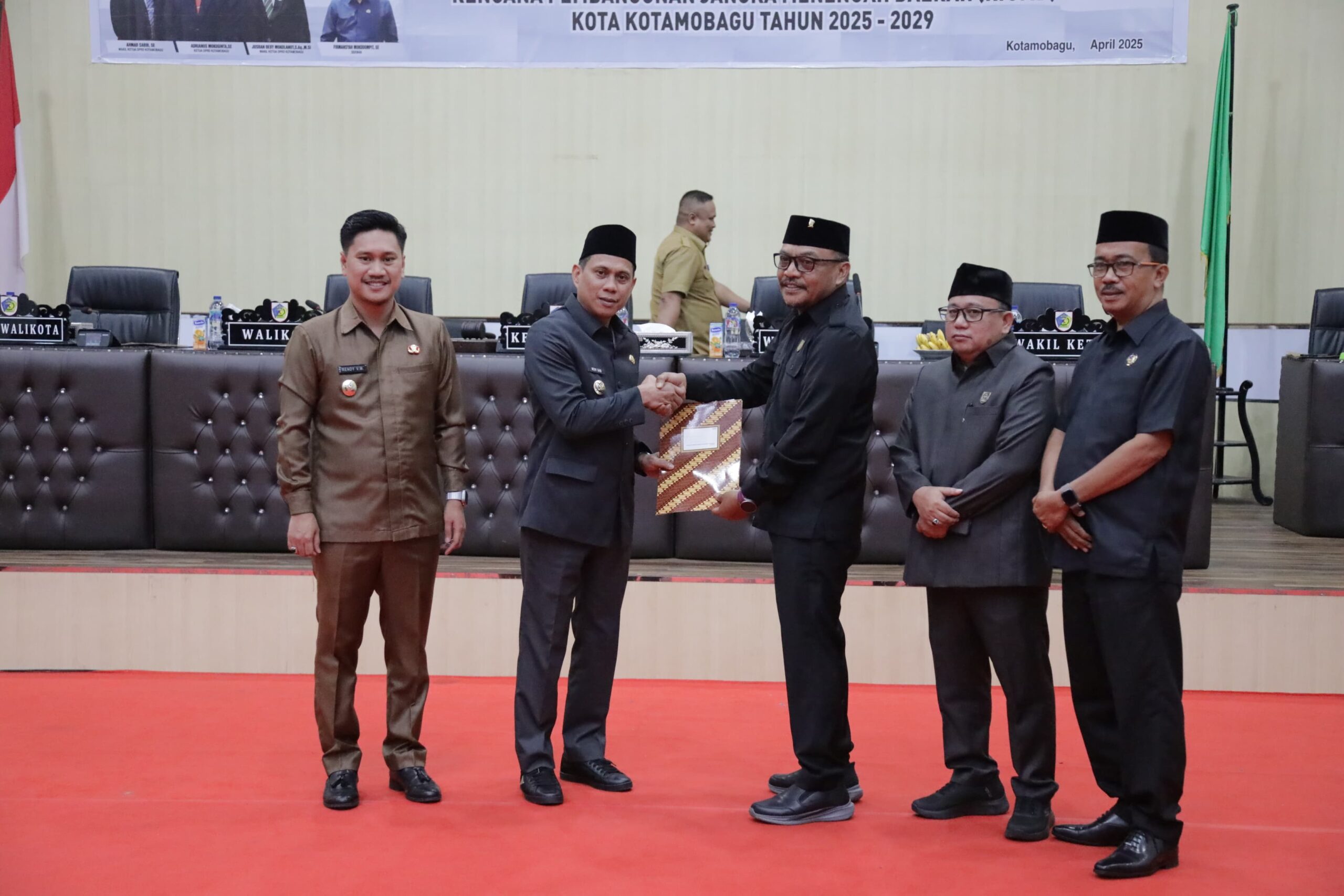 Hadir langsung dalam rapat paripurna tersebut, Wali Kota Kotamobagu, dr. Weny Gaib., Sp.M., bersama Wakil Wali Kota, Rendy Virgiawan Mangkat., S.H., M.H., menandatangani Nota Kesepakatan bersama jajaran legislatif.