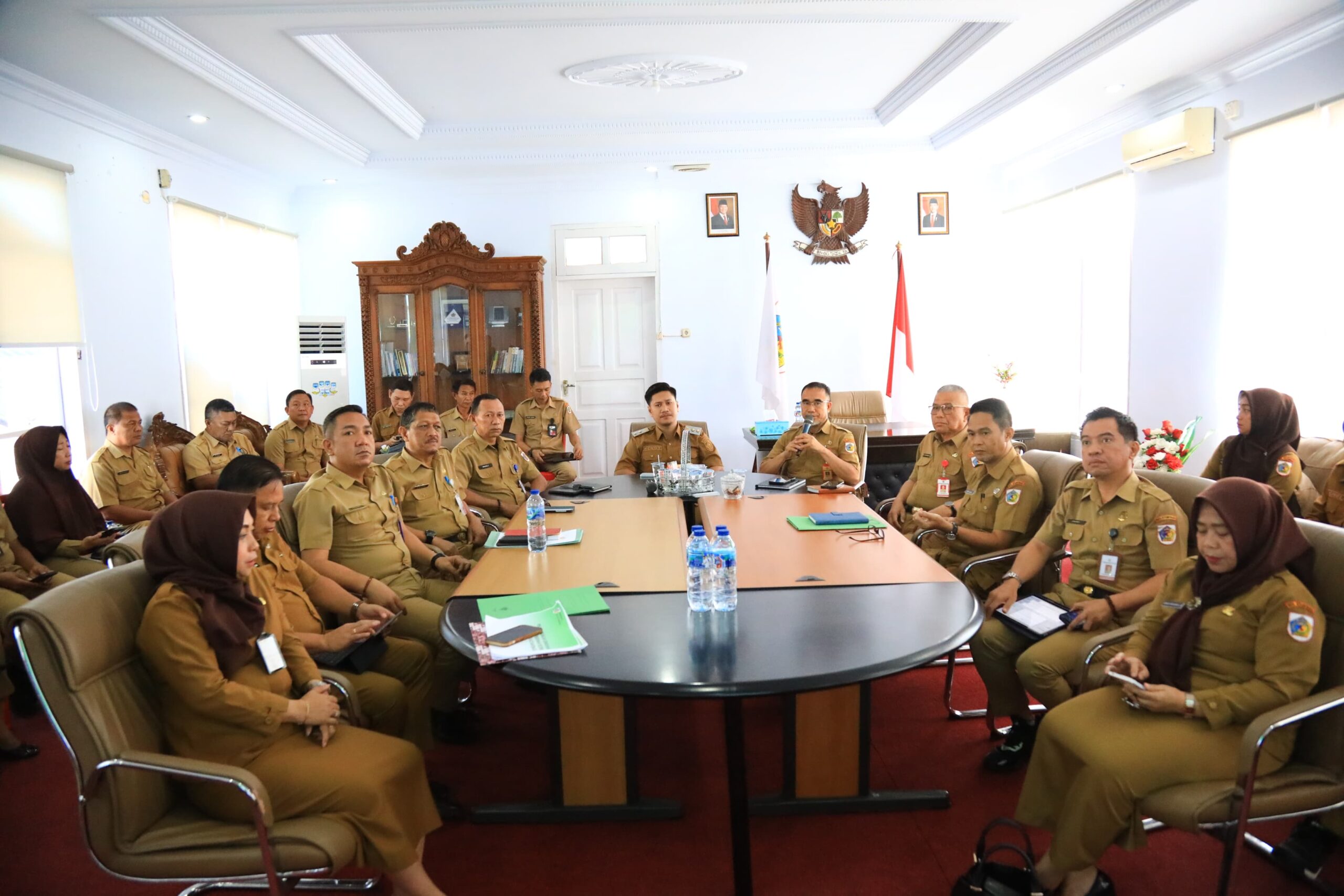 Rapat tersebut dihadiri oleh Sekretaris Daerah, Sofyan Mokoginta., S.H., M.E., para Asisten, serta Pimpinan Organisasi Perangkat Daerah (OPD) di lingkungan Pemerintah Kota Kotamobagu.