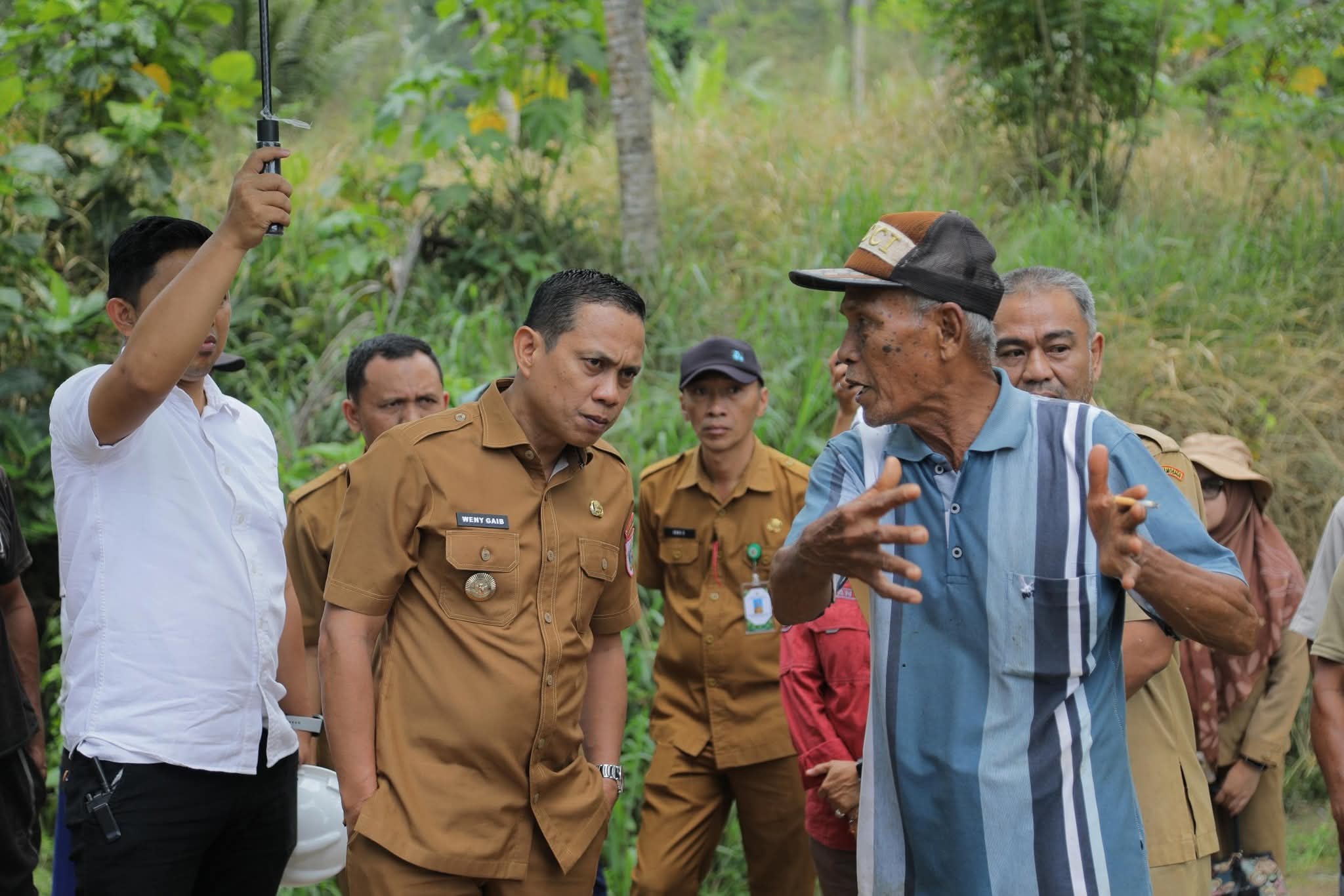 Jembatan yang menjadi penghubung utama menuju kawasan perkebunan itu putus ketika sedang dalam proses perbaikan karena beban yang terlalu berat. Setibanya di lokasi, Wali Kota berdialog dengan warga yang tengah bergotong royong memperbaiki jembatan menggunakan peralatan seadanya.