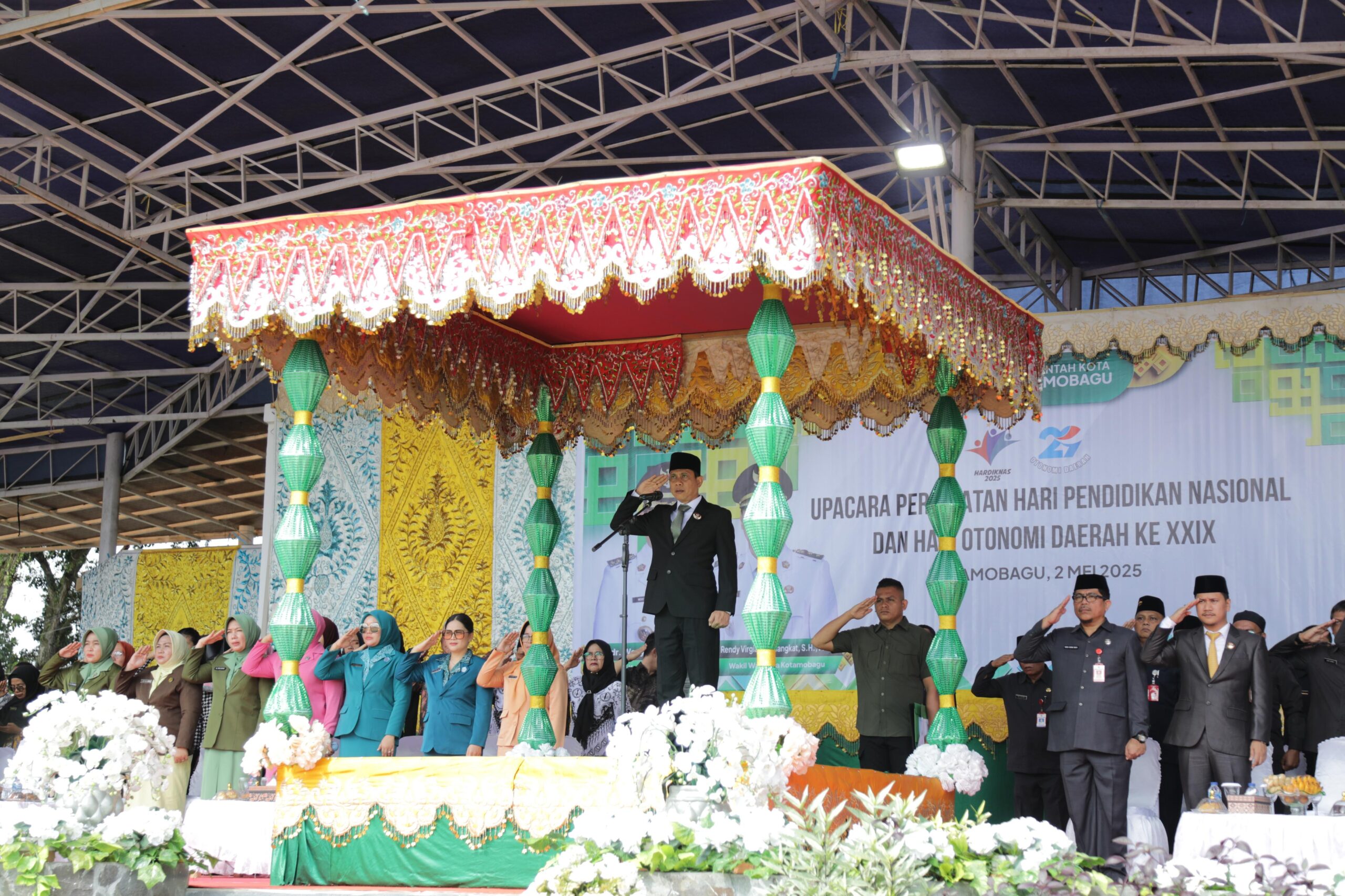 KLIK24.NEWS Kotamobagu – Wali Kota Kotamobagu, dr. Weny Gaib., Sp.M., memimpin Upacara Peringatan Hari Pendidikan Nasional (Hardiknas) Tahun 2025 yang digelar di Alun-alun Boki Hontinimbang, Jumat (2/5/2025). Kegiatan ini juga dirangkaikan dengan peringatan Hari Otonomi Daerah ke-29 Tahun 2025.