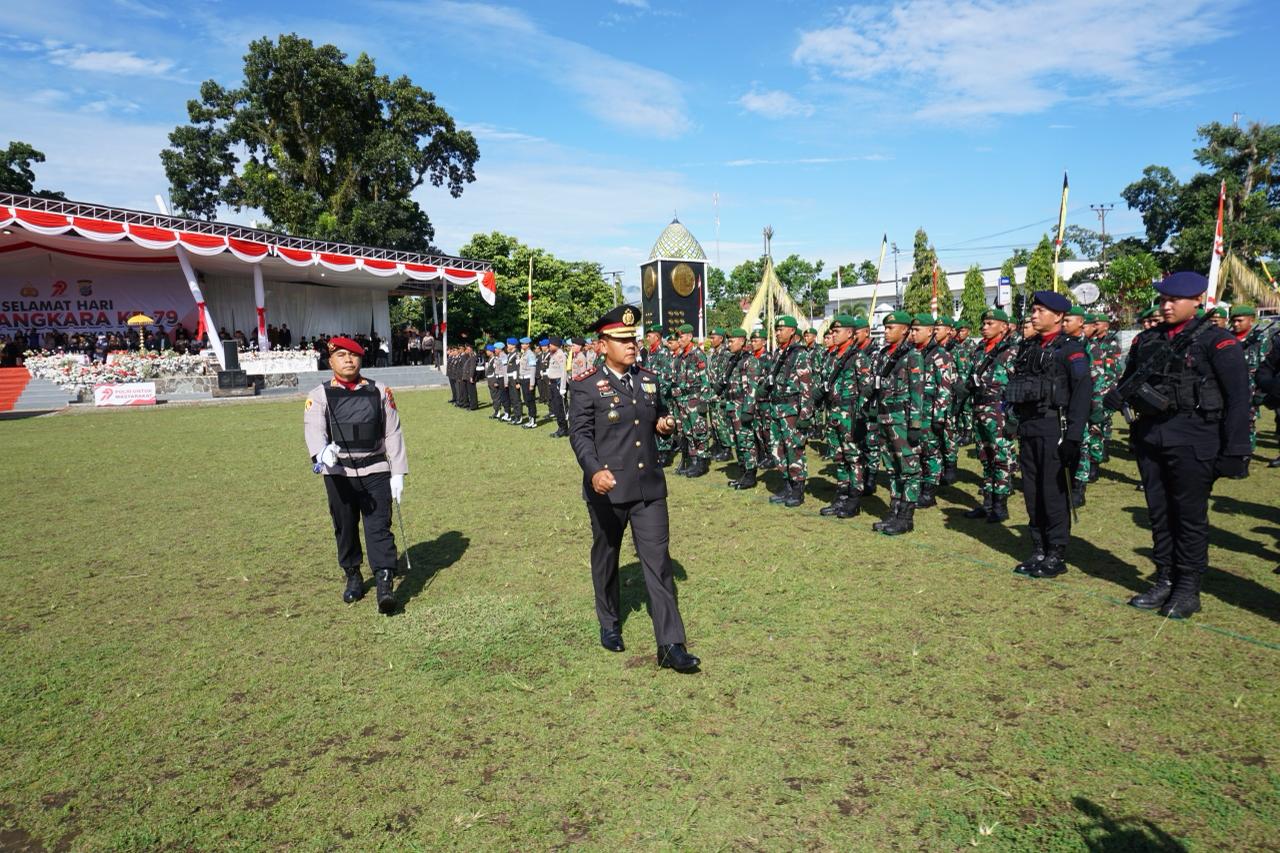 IPDA Rudi Lombo bertindak sebagai Komandan Upacara, yang diawali dengan parade pasukan yang membangkitkan semangat kebangsaan. Barisan peserta upacara terdiri dari perwira Polri, Subdenpom, Propam, TNI-Polri, ASN, Satpol PP, Dinas Perhubungan, hingga Pramuka Saka Bhayangkara.