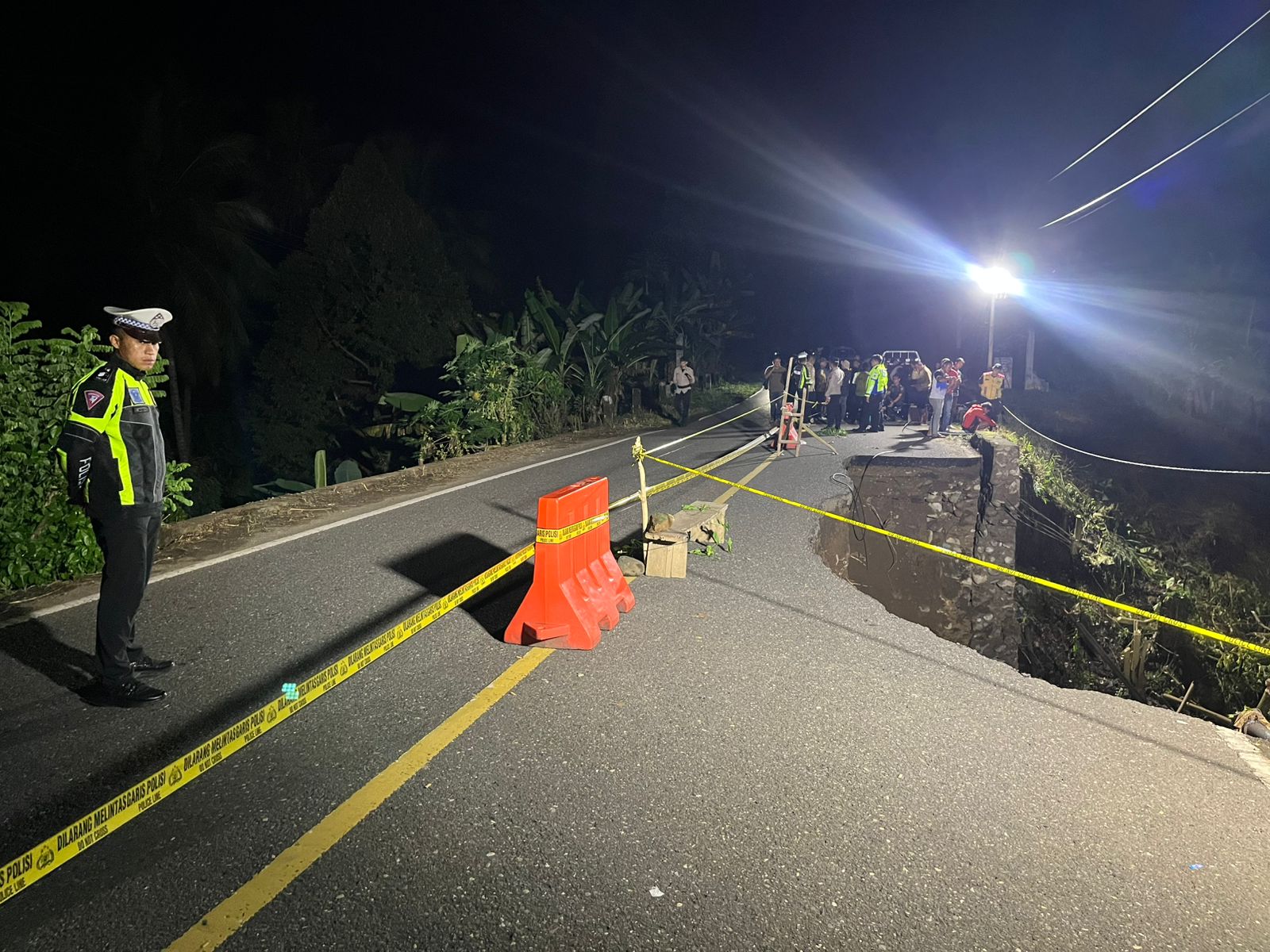 Selain itu, petugas juga memasang police line, mengatur lalu lintas secara situasional, serta melarang sementara kendaraan berat melintas di lokasi terdampak. Seluruh langkah mitigasi ini dilakukan sebagai bentuk pencegahan terhadap risiko lanjutan di kawasan rawan longsor.