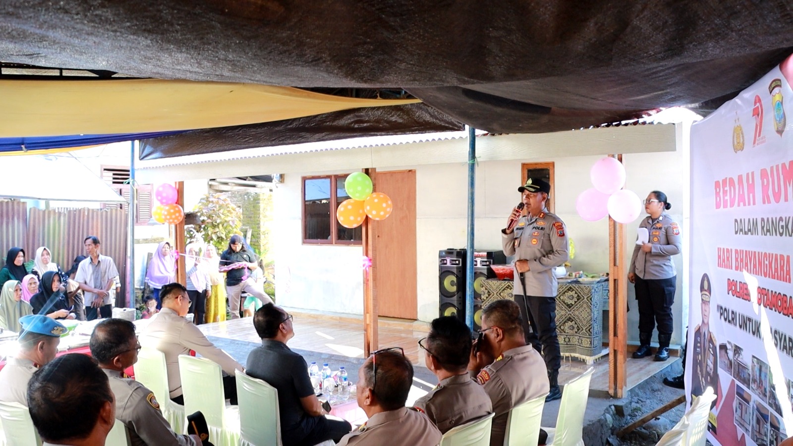 Kapolres Kotamobagu AKBP Irwanto, SIK, MH meresmikan langsung rumah hasil renovasi tersebut dengan melakukan pemotongan pita, disaksikan jajaran kepolisian dan masyarakat sekitar.