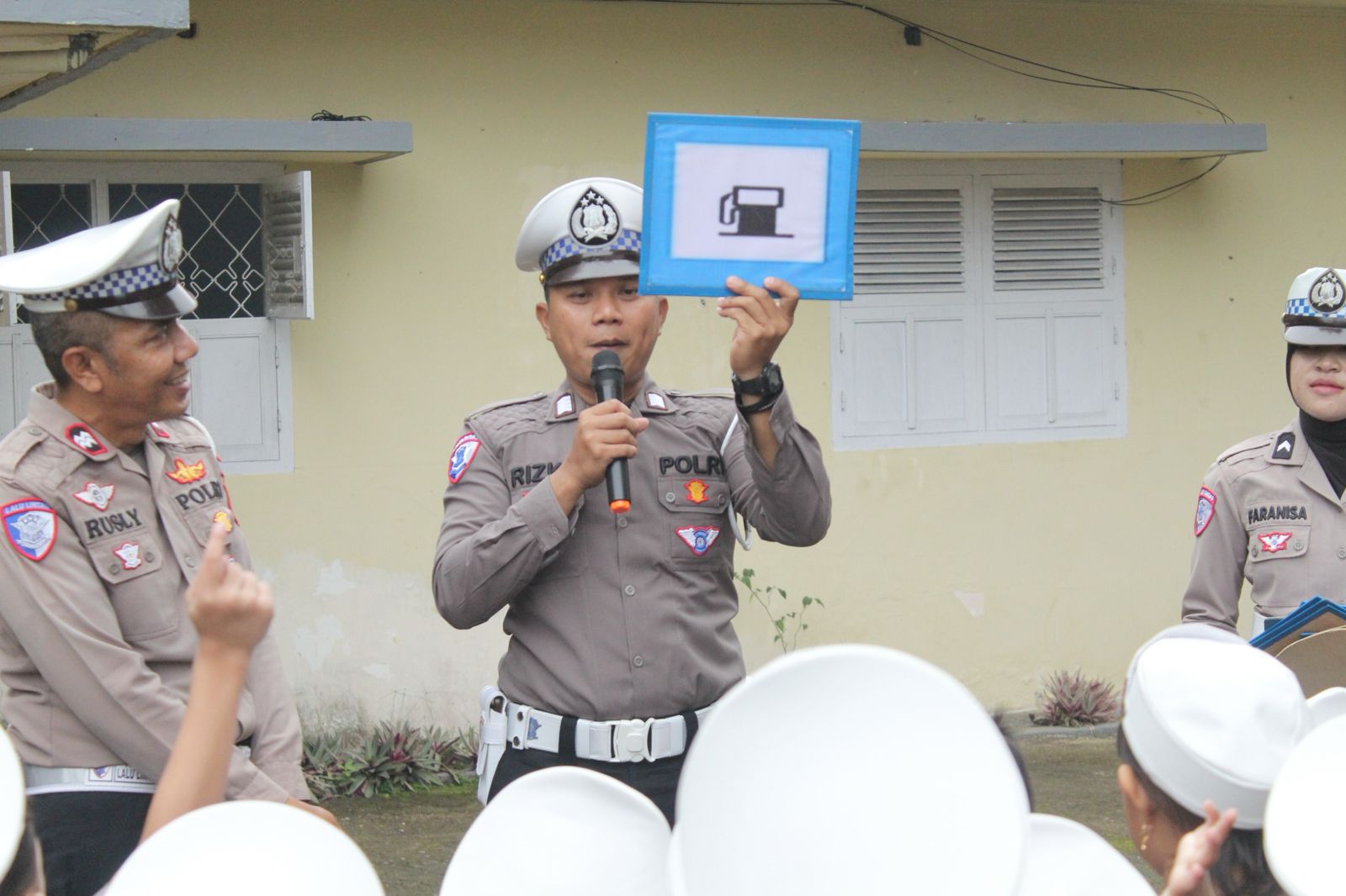 “Anak-anak diajak mengenal rambu lalu lintas dengan cara yang menyenangkan, sehingga mereka lebih mudah memahami dan mengingat. Selain itu, kami juga menyampaikan pesan penting tentang disiplin, menghormati guru dan orang tua, serta pentingnya menjaga keselamatan,” jelas Aiptu Rusli.