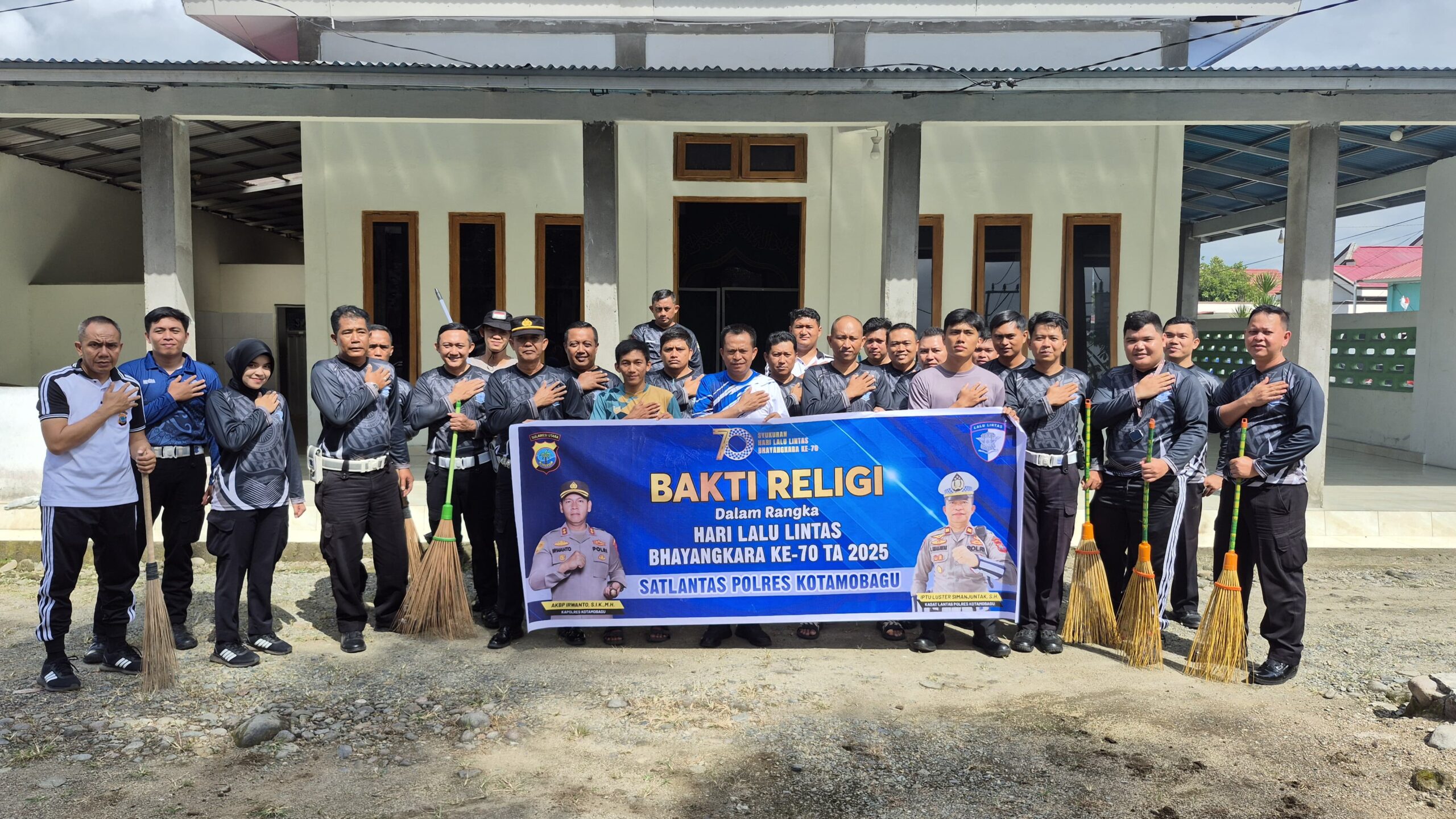 Kegiatan ini dipimpin langsung oleh Kasat Lantas Polres Kotamobagu, IPTU Luster Simanjuntak, SH, yang menegaskan bahwa bakti religi bukan sekadar seremonial perayaan, melainkan wujud nyata kepedulian sosial Polri.