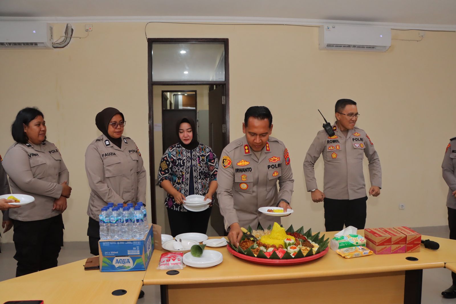 Acara syukuran ditandai dengan pemotongan tumpeng oleh Kapolres, yang didampingi Wakapolres, menjadi tujuh potong sesuai usia ke-77 Polwan. Potongan tumpeng diserahkan kepada tujuh perwakilan Polwan, mulai dari yang paling senior, Ipda Reni Adam, hingga yang termuda, Bripda Linckia Laevegata Aulia Zima.