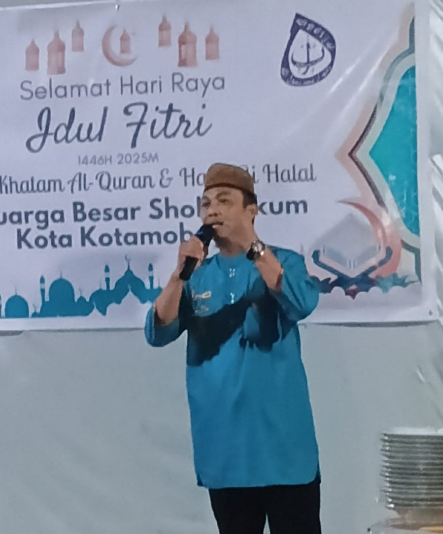 Ketua Keluarga Besar Shohibukum Kota Kotamobagu, Bapak Marsidi Kadengkang, turut memberikan sambutan dan apresiasi kepada seluruh pihak yang telah menyukseskan acara ini.