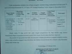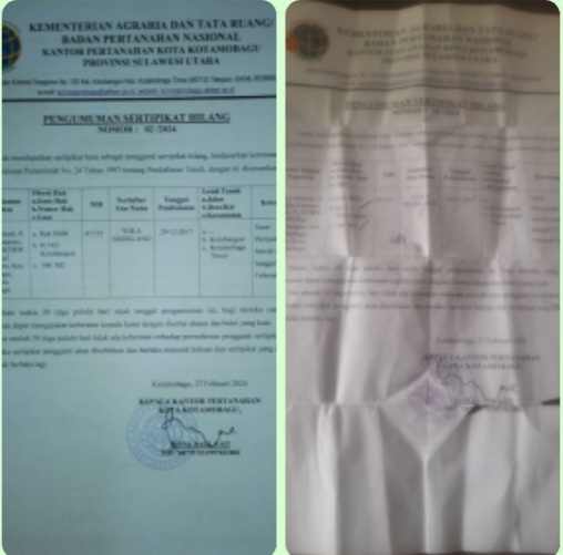 “Semoga Permohonan kami untuk Pembuatan Sertifikat yang baru, dapat secepatnya dikabulkan oleh Pimpinan Kantor Badan Pertanahan Nasional (BPN) Kota kotamobagu.***