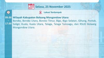 KLIK24.NEWS Kotamobagu — PLN UP3 Kotamobagu kembali menjadwalkan pemeliharaan jaringan listrik pada Selasa, 25 November…